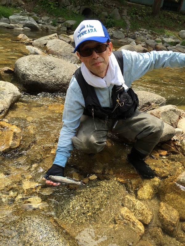 | 5/12(日)は上州屋豊田店の講習会。これまでは店内講習だったが、今回は市内の野原川マス釣りセンターで実釣講習である。 野原川は約2.5kmにわたり仕切りのない自然渓流の管理釣り場である。ニジマスを放流するが、天然アマゴもいる。 この日は食堂から下流200mが講習会のために貸し切りである。GWには家族連れで賑わったようだが、この日は我々以外はほとんどいない。 ここがいいのは指定された場所以外でも、そこに釣り人がいなければ釣ってもOkで、このため残りマス狙いで下流から釣りあがる人もいる。 晴天で風もなくカラっとした暑さのテンカラ日よりであるが大渇水である。 今年は1月からこれまでまともな雨がないので、どこの渓流も大渇水。自然は必ずバランスをとるので大雨で渇水を帳消しにする。 昨年がまさにそうで6月まで大渇水だったのを、7月はじめからの大雨で渓流はガラガラに荒れた。 私のフィールドの一つである岐阜県ひるがの高原ではなんと1000ミリの雨が降った。1000ミリである。高原全体が1mの水で覆われたことになる。 5/18-19は岐阜県石徹白でテンカラミーティング2019である。私は良い子でいるので大雨にしないでください神様。 ということで野原川も大渇水。平水より15cm低い。今回はニジマスとアマゴを7:3の割合で放流である。 渇水なので、今イチ魚の活性が上がらない。渇水だと魚がブルブルと影におびえ、ヒヒーンとおそれいななき、コッソリと隠れてしまい、あんなにたくさん放流したのに一体どこ行った状態になる。 シカーシである。こんなときキャリアの差が出る。夜勤明けで一睡もせずに参加したTさんは、こんな状況でもニジマス10匹以上とアマゴ2匹で段トツである。 なんでそんなに釣れたんですか? エサはイクラ?と冗談できくと、これがね!と秘密の毛バリを見せてくれる。 黒っぽいマラブーである。マラブーは秘密でもなんでもないが、こういうところの放流魚に効果があることを知っているからキャリアなのだ。 一カ所にニジマスとアマゴが10匹以上集まっている流れがある。なぜここにだけ集まるのか。よほど居心地がいいのだろうか。同じような場所は他にもあるのに。 普通に流しても反応がないが、毛バリを大きく動かして誘うと反応する。ははぁーん、誘うと食い気が出るな。 さっそく今日がテンカラデビューの人たちを呼んで誘い方を伝授して順に釣ってもらう。 大渇水の中でも10余匹釣った人、10匹近い人、天然アマゴを釣った人まで全員が釣れてまずまずの講習会となった。 オフシーズンになりそろそろ禁断症状の出るこの秋にまた開催する予定である。 今回、10名の定員があっという間に埋まったので、今度こそはと思っている人は今からマラブーを用意しておくのがいいのでは。 上州屋豊田店ショップニュース