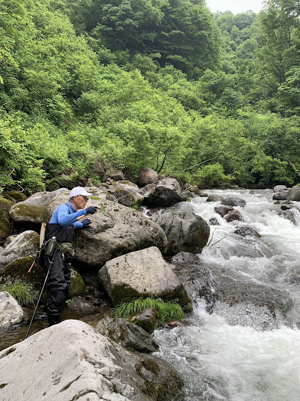 | 6月27日は岐阜県荘川の一色川で講習会だった。 犬山から2名、大阪から4名。うちルアーが2名である。
