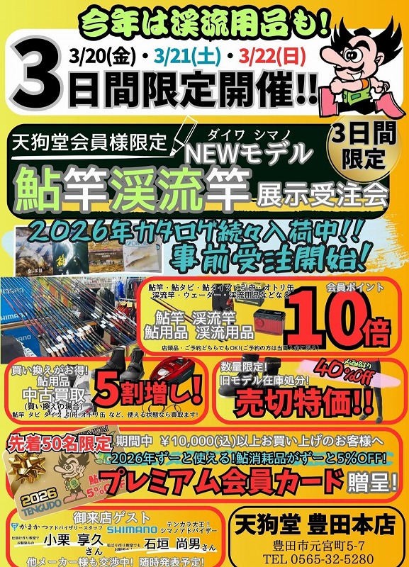 3/21は春の芝川テンカラ交流会です。3/20,22は天狗堂にいます。